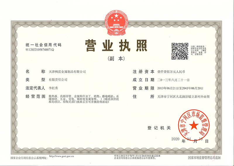 天津楓度金屬制品有限公司營業執照